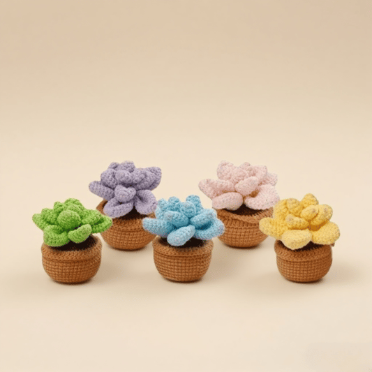 Handmade Crochet Succulent Plant Set - 5 Pcs Colorful Amigurumi Potted Plants Cute Home Decor for Desk/Shelf Unique Gift for Plant Lovers & Crafters