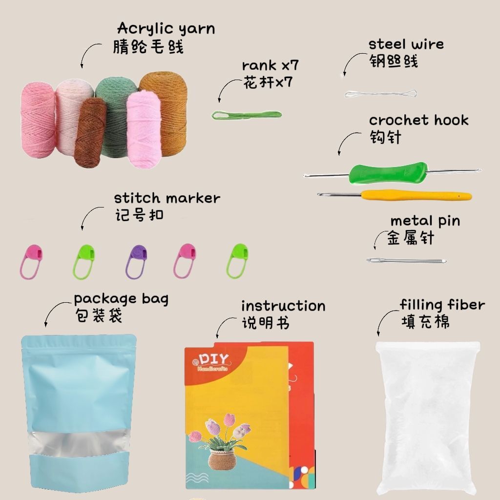 • Crochet Tulip Flower Pot Kit for Beginners