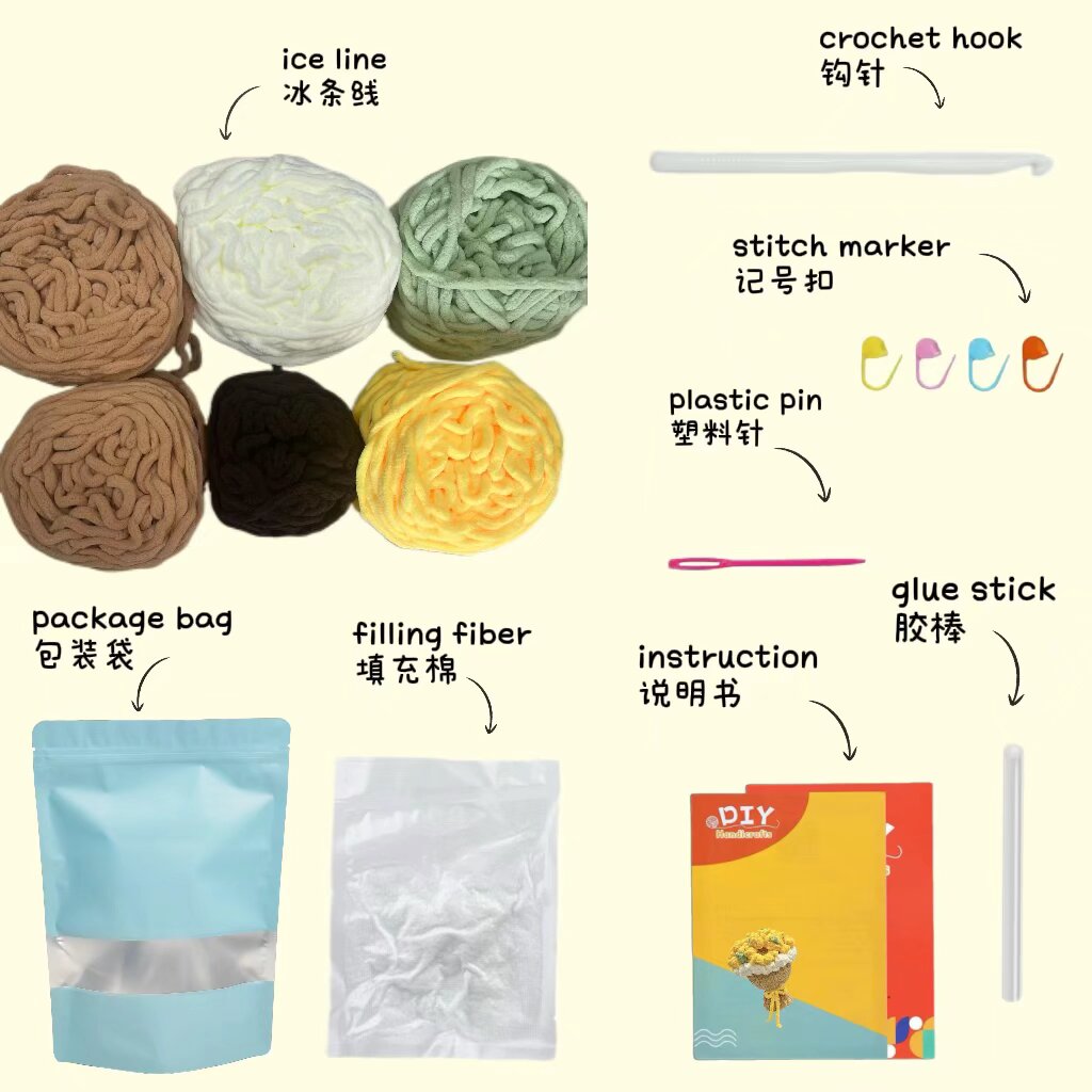3 .      Our crochet kit has high-quality yarn and filling cotton.